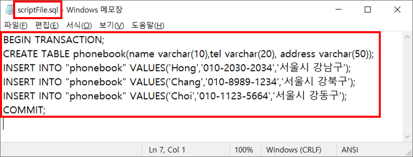 [SQLite] 스크립트 불러와서 쿼리실행 본문