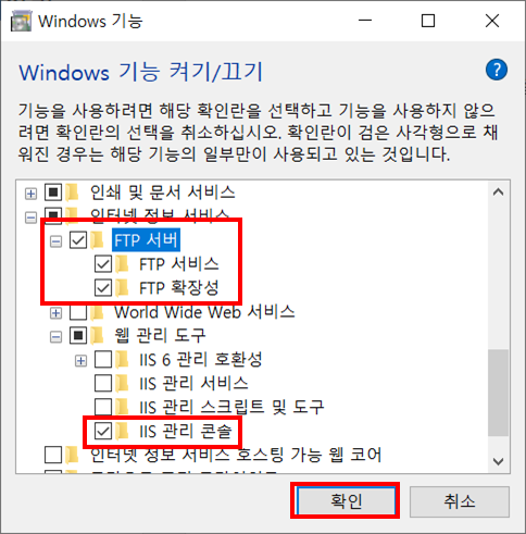1) 인터넷 정보 서비스 > FTP 서버 : 체크