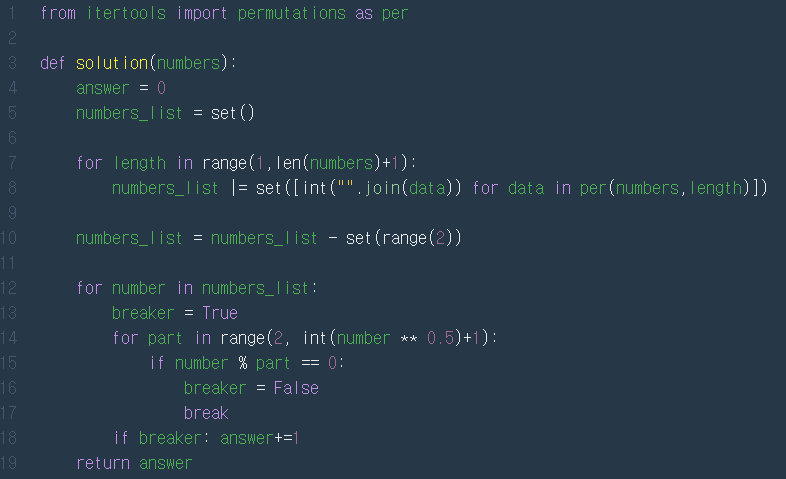 1) numbers 매게변수에 들어오는 문자열의 길이에 따른 조합한 수를 set형에 저장