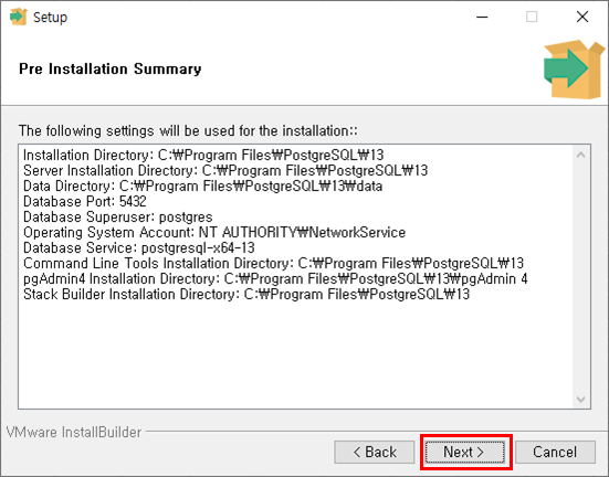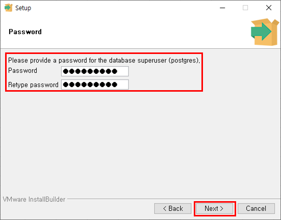 ▶ postgres 사용자의 암호 -> 상위에서 지정한 암호로 설정