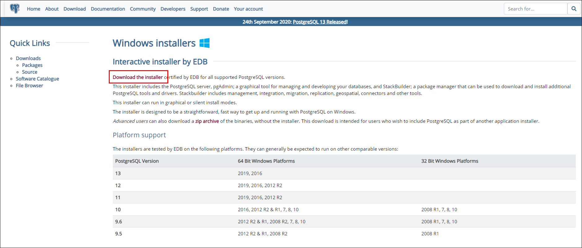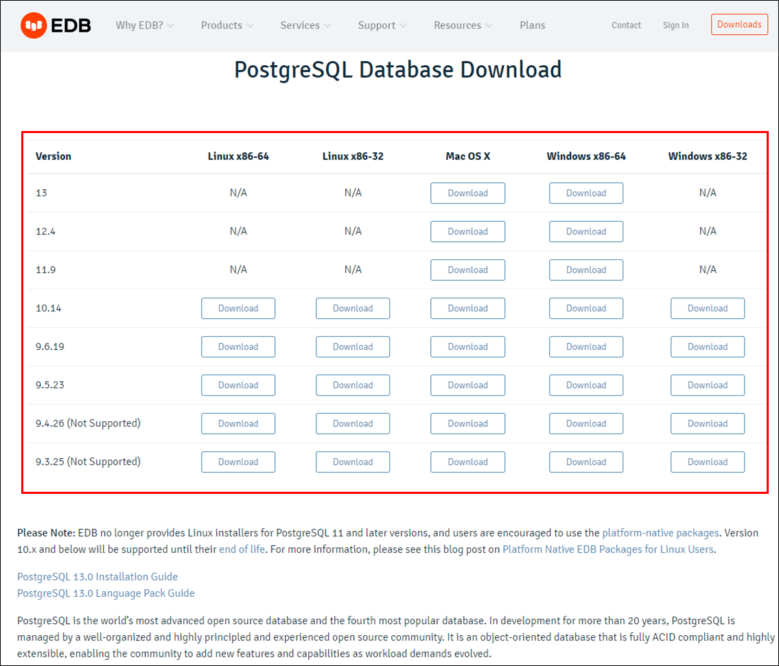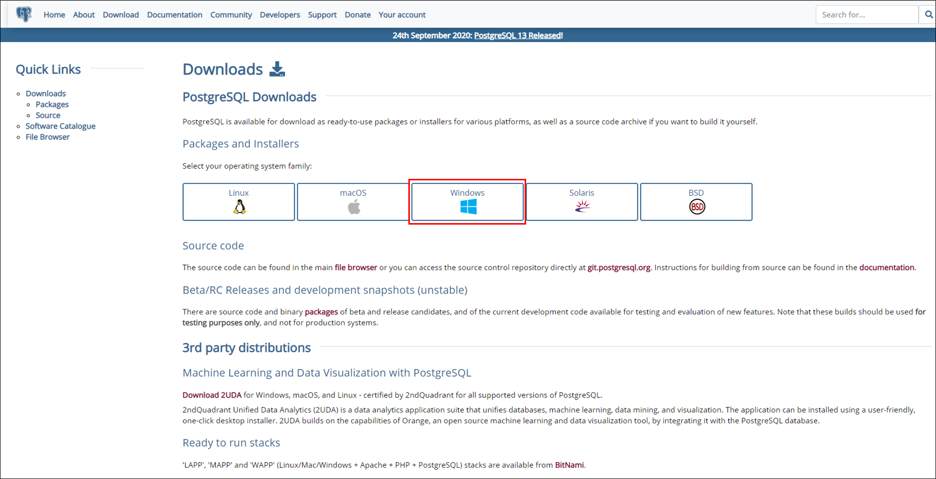 Downloads PostgreSQL Downloads PostgreSQL is available for download as ready-to-use packages or installers for various platforms, as well as a source code archive if you want to build it yourself. Packages and Installers Select your operating system family