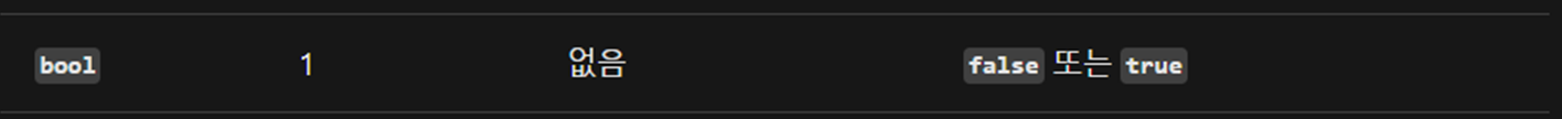 불형 데이터 타입은 참(true), 거짓(false) 두개의 값만 저장할 수 있으며 true, false 값 이외에 0 또는 NULL을 제외한 값을 불형 데이터 타입 변수에 대입하면 true를 반환한다.