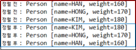 Person 객체의 weight 인스턴스 변수를 이용한 정렬